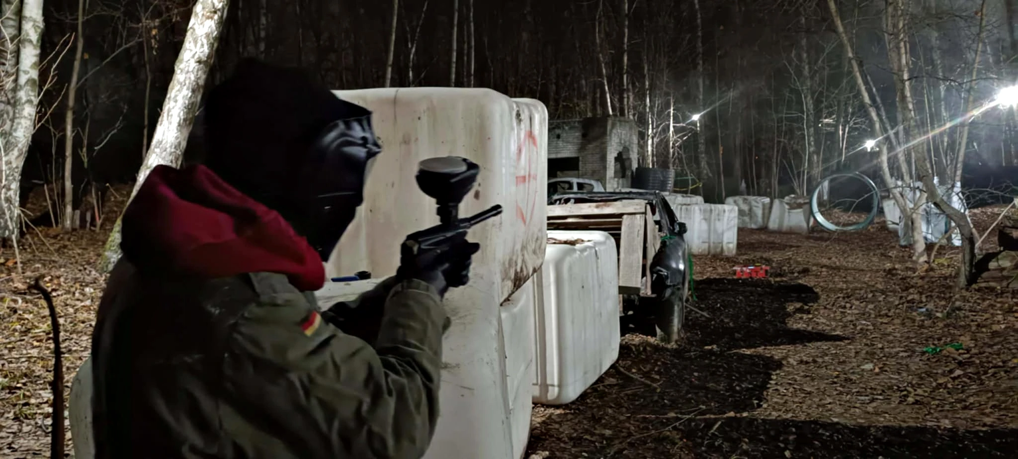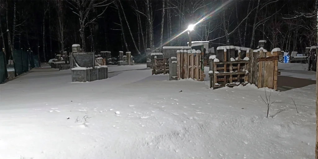 Zima to nie powód, by odłożyć marker na półkę. Na naszym polu gramy przez cały rok — śnieg, mróz i para z masek tylko dodają klimatu. Rozgrywki w Rembertowie nabierają wtedy zupełnie nowego charakteru: cisza, skrzypiący śnieg pod butami i dźwięk kulki trafiającej w cel – czysta adrenalina.